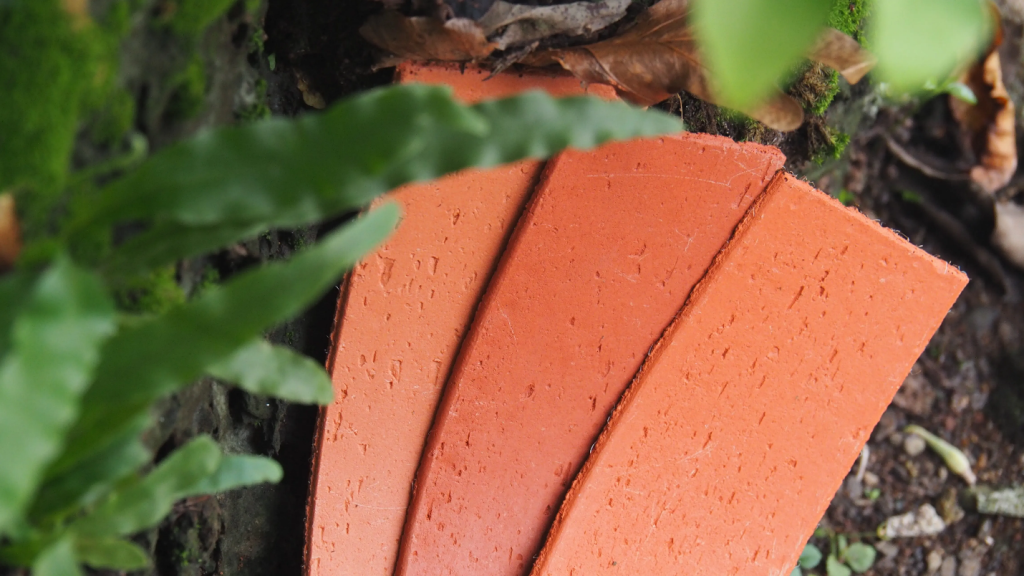 - Terbuat dari bata merah yang dipotong tipis (±1–2 cm) atau dari material buatan dengan tekstur menyerupai bata.